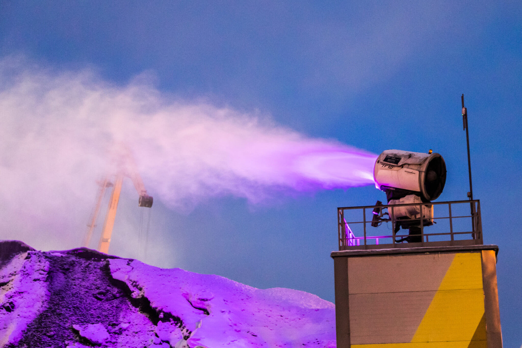 To find a solution to this problem, we have worked hard to make our machines winterproof. Thanks to the heating kit, the V12s, V22 and V7 work as efficiently as usual down to -10°C. Our flagship product for winter use is the V22Orca: when the icy temperatures make it impossible to suppress dust with water mist, it produces snow. This is why the V22Orca guarantees efficient dust control all year round.